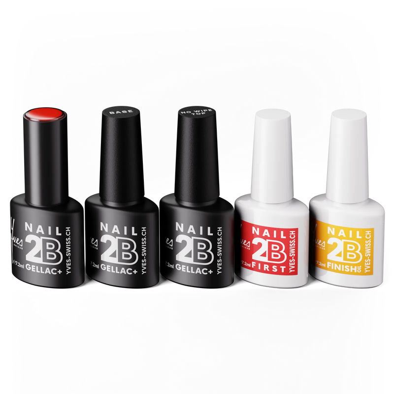 Das 2B Mini Set ist das perfekte Probier-Set für den Einstieg in die Welt von 2B Gellac+. Es enthält 2B First und 2B Base als Vorbereitung, die Farbe 2B 007 sowie 2B Top Coat und 2B Finish als Abschluss.